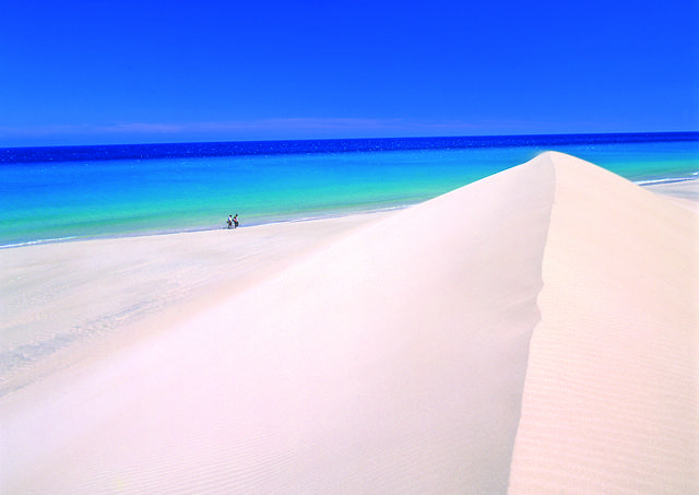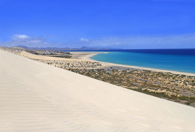 Fuerteventura is the closest of the Canary Islands to the coasts of Africa, less than 100 kilometers away. Named a world Biosphere reserve, the island is over 100 Km long and 30 wide, counting on 152 beaches, many with a turqoise water and with golden sand. The island however has much more to offer,being an ideal destination for film producers, artists who desire to be in touch with the tranquillity of nature and desert landscapes, events organizers, honeymooners searching for romanticism, families with children and teenagers and also for all those who enjoy keeping fit. Hiking, biking, running in the dunes, playing golf or tennis, getting adventurous on a jeep or quad safari by the volcanos or in the island remote corners are just an example of the various sports that can be played. The perfect destination to relax, breath fresh and pure air, treat the body and mind in one of the many spa or thalassotherapy centres or try a local Aloe Vera treatement, well known for its curative power. Taste exotic local fruits such as papaya, mango, platano canario and avocado. Water sports lovers consider Fuerteventura an heaven with a multitude of activities, kiteboarding, surfing, wind surfing, fishing, sailing and scuba diving are just an idea of what you can get. A 365 days destination, thanks to its wonderful climate rarely falling below 18C or rising above 32C, Fuerteventura is connected directly with main cities throughout Europe in each part of the year making it simple to organize a vacation in the island of dreams.